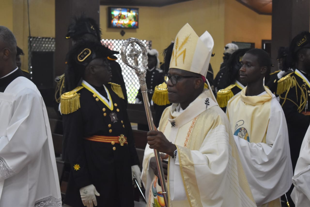 On Saturday, 14th February, the Archbishop of Monrovia, His Grace Gabriel Blamo Jubwe, celebrated a Thanksgiving Mass for the newly elected and installed officers of the Supreme Subordinate Commandery of Liberia of the Knights of St. John International (KSJI) and the Ladies Auxiliary.During the Holy Mass, the Archbishop warmly acknowledged the invaluable services rendered by the Knights and Ladies Auxiliary to the Church over the years, particularly in the areas of social justice, fraternity, accountability, and charity. He encouraged the new leadership to remain steadfast in their commitment to the mission of the Church and to continue being visible witnesses of Christian service in society.In response, the Knights and Ladies Auxiliary pledged their fullest support to the Church, ecumenical bodies, and the nation, reaffirming their dedication to promoting unity, peace, and moral leadership in Liberia.The newly elected leadership of the Supreme Subordinate Commandery includes:Major General Andrew Nimley Jr. – Supreme Subordinate PresidentRespected Philomina Williams – Supreme Subordinate Respected PresidentThe solemn celebration was graced by ten priests, including:The Supreme Subordinate Spiritual Director, Very Reverend Dennis C. NimeneThe Chaplain of KSJI, Archdiocese of Monrovia, Reverend Father Philip W. Tickey Jr.The District Superior of Society of African Missions Liberia (SMA Liberia), Very Reverend Tayee BoleyMembers of the Knights of St. John International, the Ladies Auxiliary, clergy, and lay faithful were present in large numbers, creating an atmosphere of thanksgiving, fraternity, and joyful celebration.The Mass concluded with expressions of gratitude to God for the gift of leadership and with prayers for wisdom, unity, and perseverance for the newly installed officers as they begin their term of service.