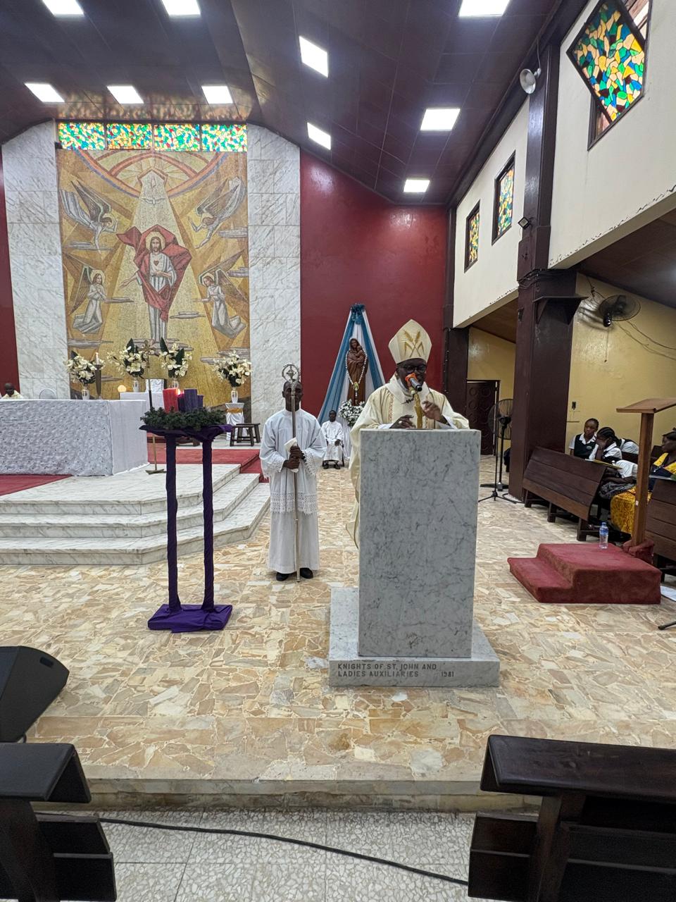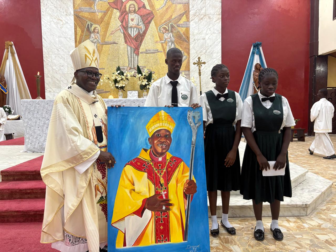 On Friday, December 13, 2025, the Class of ’85 of Cathedral Catholic School gathered at Sacred Heart Cathedral to celebrate their Ruby Anniversary (40 years) with a solemn Thanksgiving Mass.The Holy Mass was celebrated by His Grace, Most Rev. Dr. Gabriel Blamo Jubwe, Archbishop of Monrovia, assisted by the school’s Chaplain, Rev. Fr. Martin C. Dunham. The celebration brought together current students, members of the Alumni Association, and invited guests in an atmosphere of gratitude and thanksgiving.Following the Mass, the Archbishop blessed the newly completed tiling of the corridors of Cathedral Catholic School and unveiled the commemorative plaque of the Cats Kingdom – Class of ’85, marking the alumni’s lasting contribution to their alma mater.In his homily, Archbishop Jubwe commended the Alumni Association for its unwavering support to the school and encouraged students to remain focused on their education, uphold discipline, and grow into God-fearing and responsible citizens who will positively impact society.As a token of appreciation for his continued pastoral care and support, the Class of ’85 presented the Archbishop with a framed board mount portrait of himself.The Cathedral Catholic School community remains deeply grateful to the Alumni Association, especially the Class of ’85, for their invaluable support and commitment to the growth and development of the school.May God continue to bless and reward you abundantly.